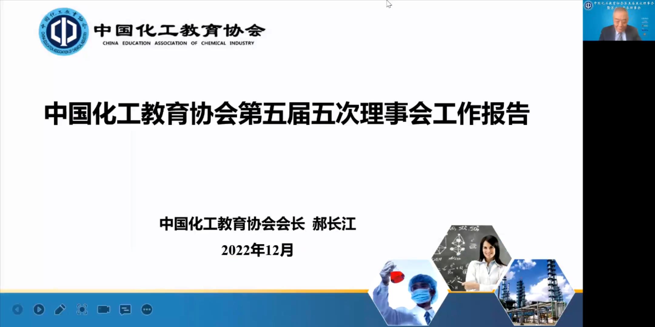 2022年12月23日上午,中國化工教育協會第五屆五次理事會議在線上召開,中國化工教育協會第五屆理事會全體理事及部分會員單位代表出席會議。
