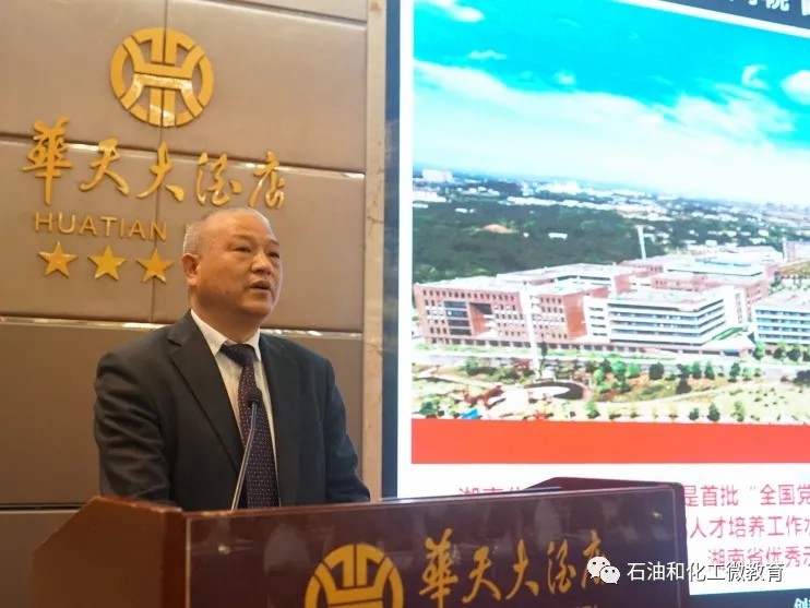 中國(guó)化工教育協(xié)會(huì)副會(huì)長(zhǎng)、湖南化工職業(yè)技術(shù)學(xué)院黨委書(shū)記王雄偉作《創(chuàng)新驅(qū)動(dòng)雙高專(zhuān)業(yè)群,育化工智能技術(shù)人才》報(bào)告,分享了學(xué)校以雙高專(zhuān)業(yè)群建設(shè)為抓手,培育化工高素養(yǎng)技術(shù)技能人才的理念與實(shí)踐。